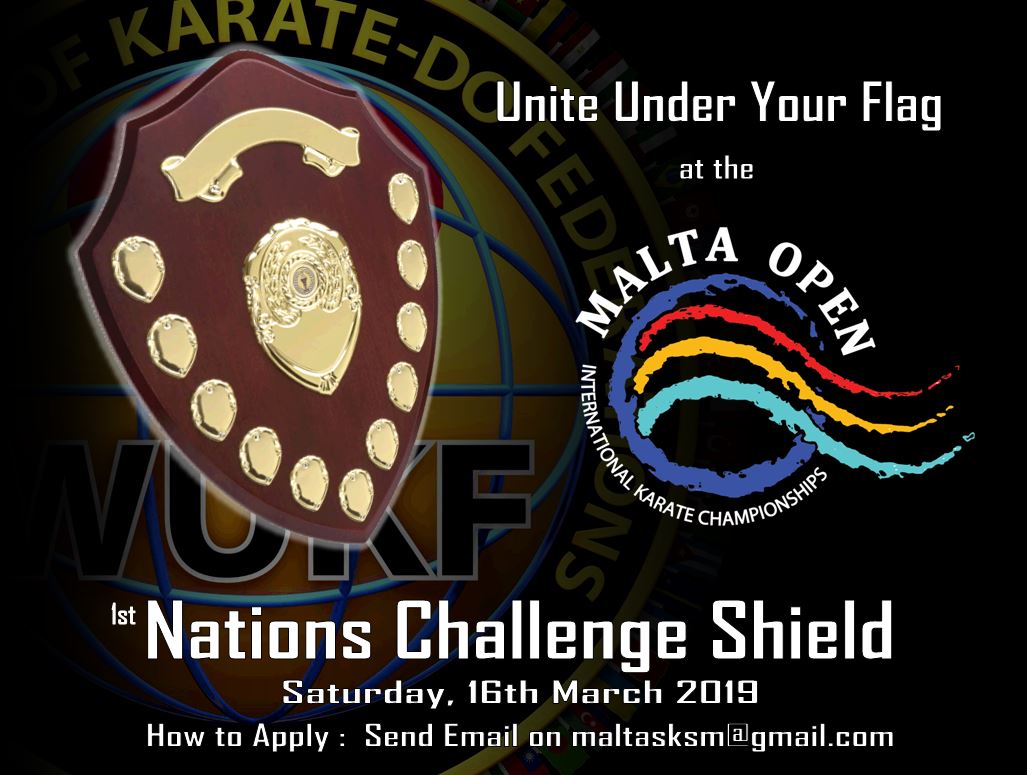 MO 2019 MALTA OPEN 2019 & KOBUDO INTERNATIONAL CHAMPIONSHIPS Trophies & Medals Click Here to view the medals given during the Malta Open 2019 (Premi qui per vedere le medalie) Click Here to view Trophies given (Premi qui per vedere i Trofei) 1st NATION'S CHALLENGE SHIELD (Scudo della Prima Sfida delle Nazioni) PROMOTION Click Here (Promozione)